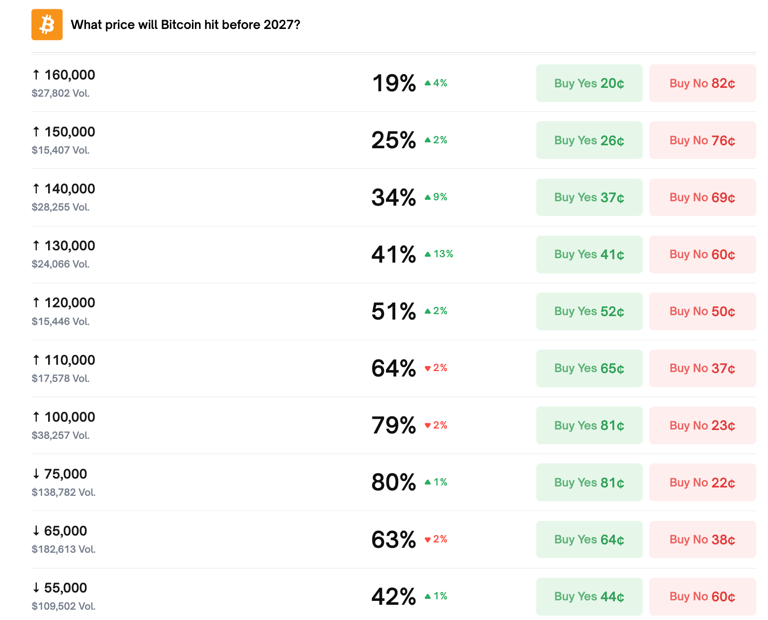 Bitcoin price targets before Dec. 31, 2026. Source: Polymarket