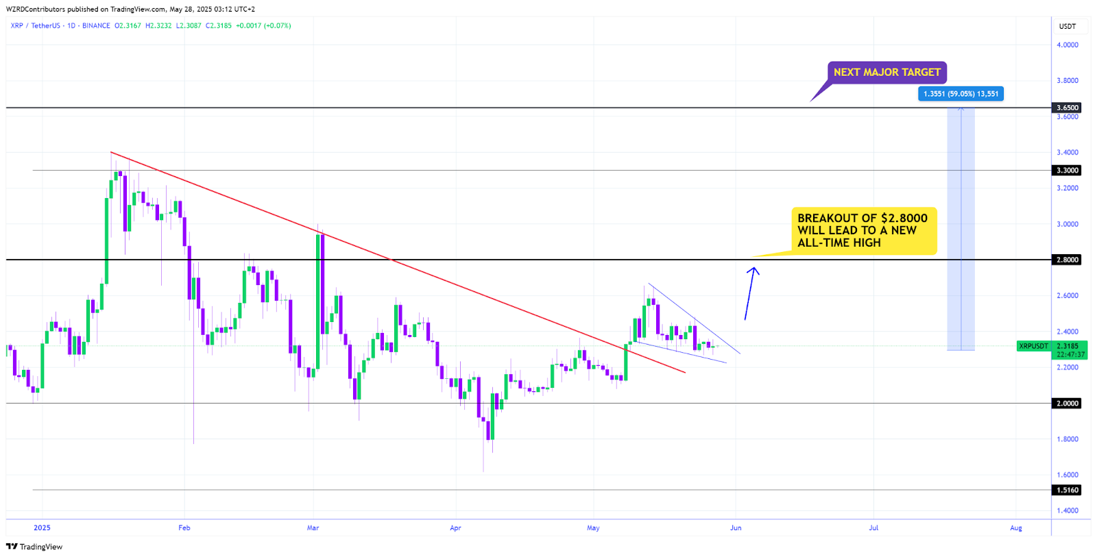 “A breakout of this wedge will push markets toward the $2.80 resistance. Above that resistance, we will eventually get to a new all-time high.”