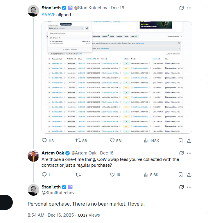 In a post to X on Tuesday, Kulechov said despite 2025 marking the most “successful year” for the platform to date, he still feels that Aave is on “day zero compared to what lies ahead.”