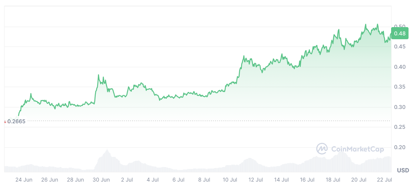 Arbitrum (ARB) has seen an 85% increase in the past month, driven by Altcoin season, and is trading at $0.48 now.