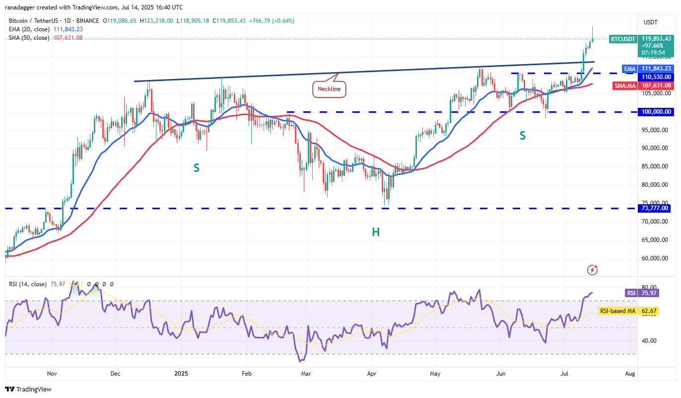 Bitcoin (BTC) started the new week on a strong note, rising above $123,000, but higher levels are witnessing some profit booking. A positive sign is that the bulls are trying to maintain the price above $120,000.