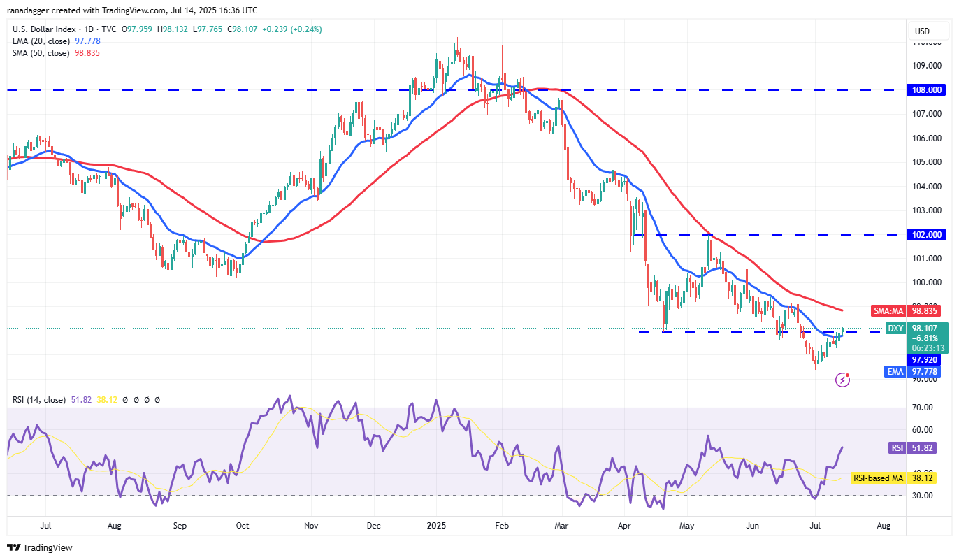 The US Dollar Index (DXY) rose above the 20-day exponential moving average (97.77) on Friday, indicating that the selling pressure is reducing.