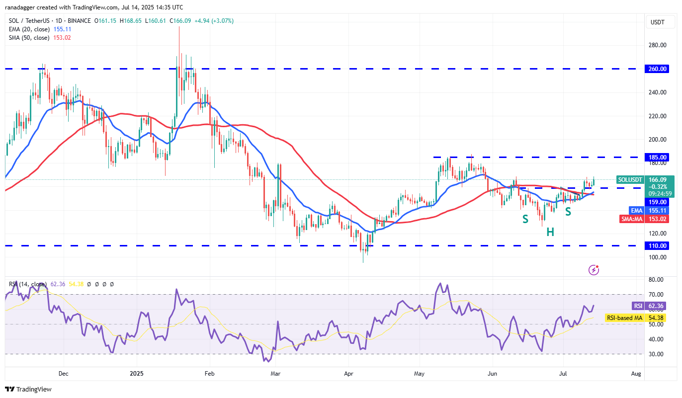 Solana (SOL) completed a bullish inverse H&S pattern on a close above $159 on Thursday, and the bulls successfully defended the retest of the breakout level on Saturday.