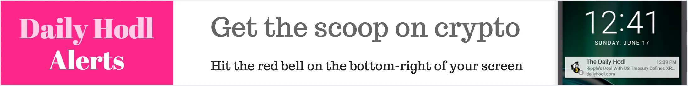 Disclaimer: Opinions expressed at The Daily Hodl are not investment advice. Investors should do their due diligence before making any high-risk investments in Bitcoin, cryptocurrency or digital assets. Please be advised that your transfers and trades are at your own risk, and any losses you may incur are your responsibility. The Daily Hodl does not recommend the buying or selling of any cryptocurrencies or digital assets, nor is The Daily Hodl an investment advisor. Please note that The Daily Hodl participates in affiliate marketing.