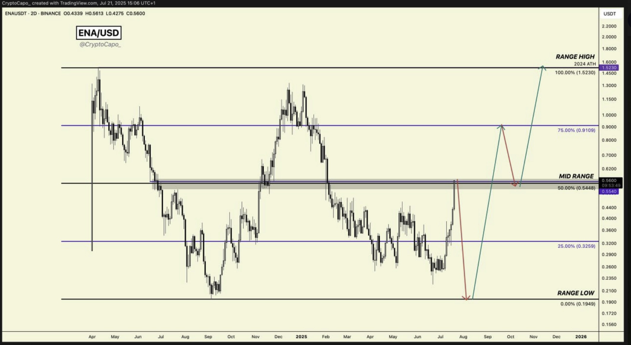 However, the analyst says ENA may have a sudden correction before continuing higher.