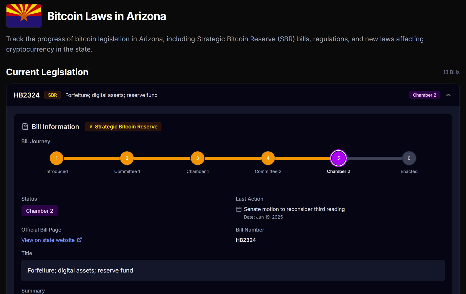 HB2749 remains the first and only Bitcoin reserve bill signed into law by Governor Katie Hobbs to date.