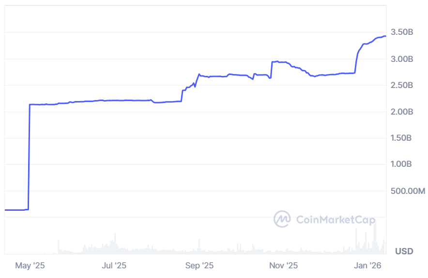 World Liberty Financial’s stablecoin, USD1, has reached a market capitalization of $3.4 billion. Source: CoinMarketCap