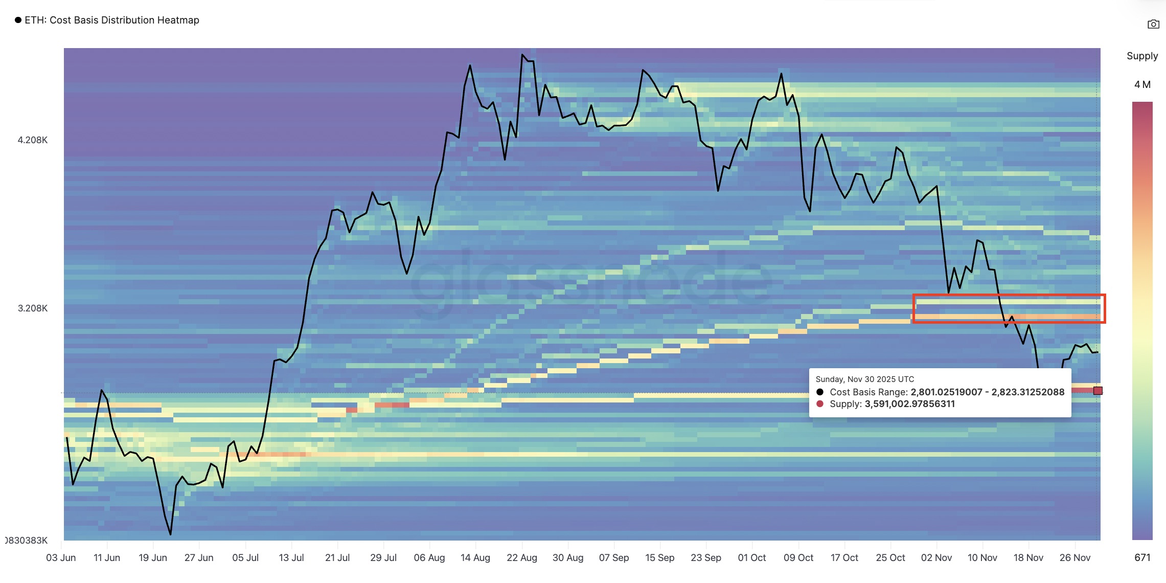 The Glassnode cost basis distribution heatmap revealed another area of resistance, located further up, between $3,150 and $3,230, where about 5.1 million ETH was acquired.