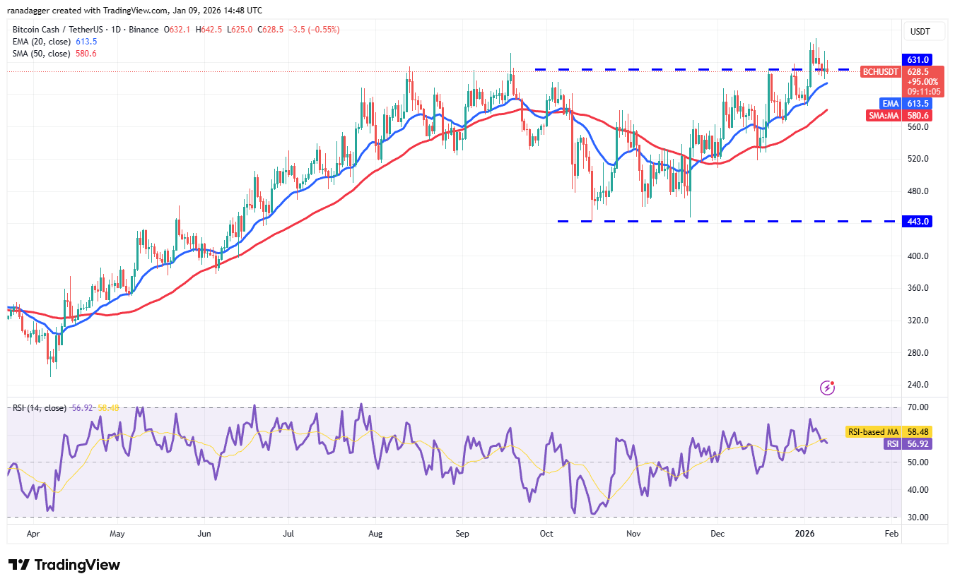Bitcoin Cash (BCH) turned up from the 20-day EMA ($613) on Thursday, indicating demand at lower levels.