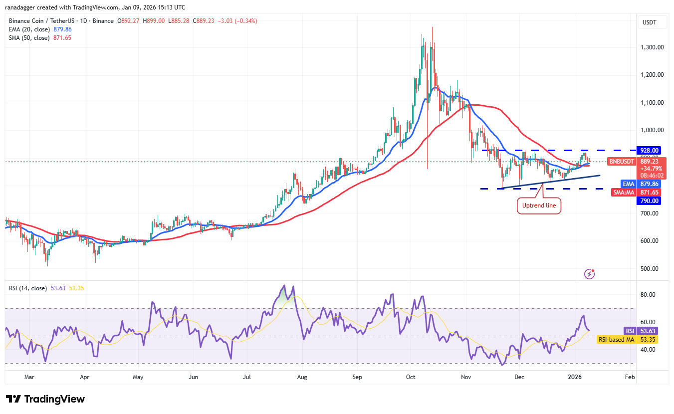 BNB’s (BNB) pullback from the $928 level is finding support at the moving averages, indicating that the bulls are active at lower levels.
