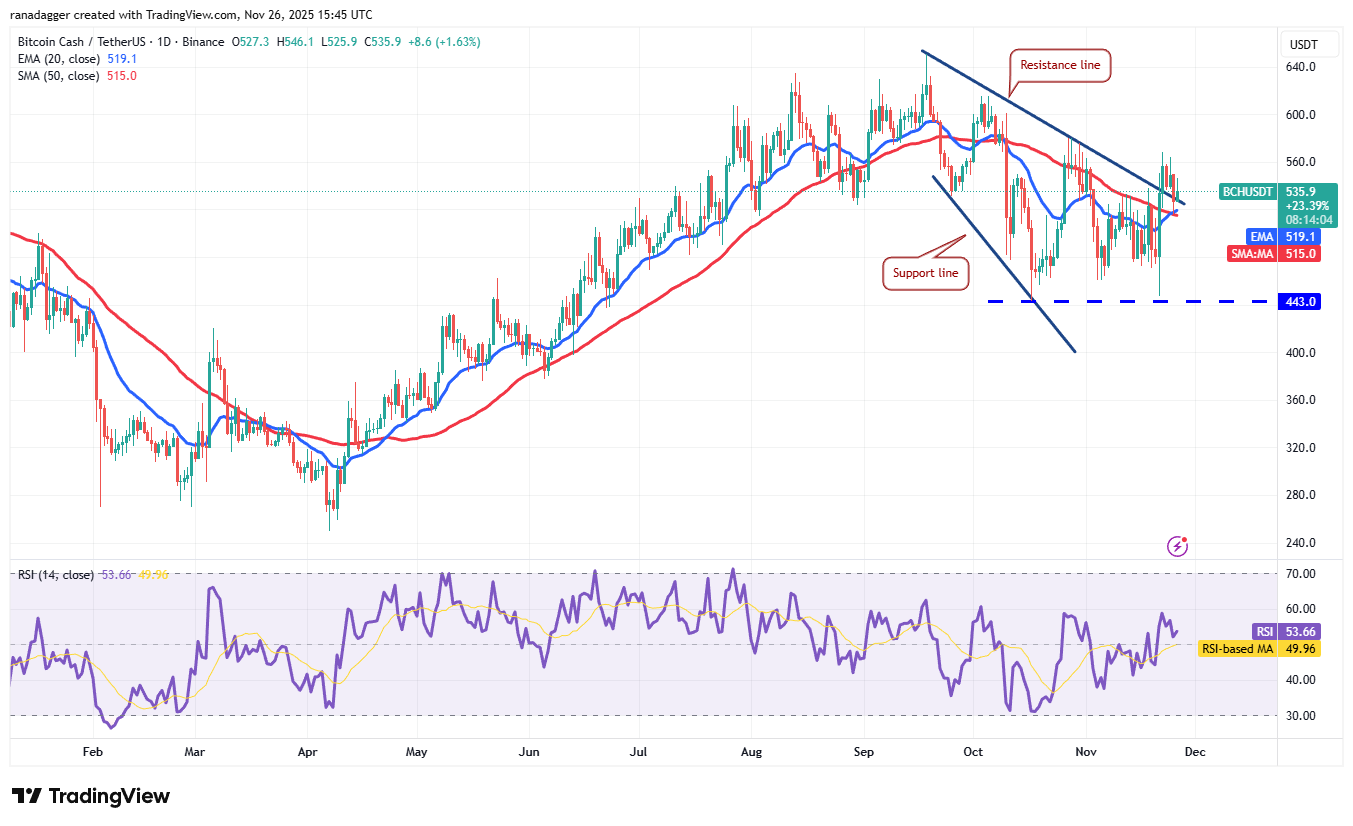 Buyers are attempting to maintain Bitcoin Cash (BCH) above the resistance line, but the bears continue to exert pressure.