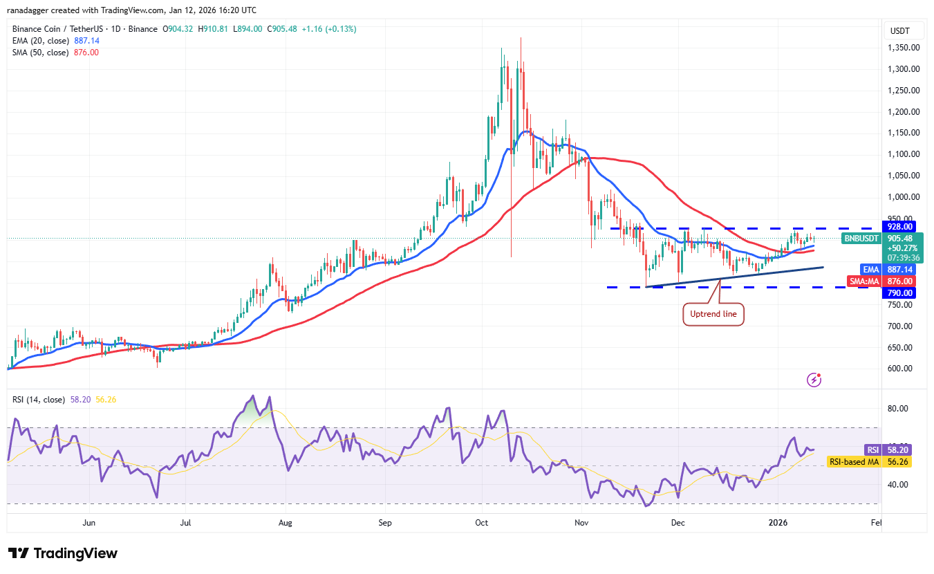 BNB (BNB) has been trading inside a narrow range between the moving averages and the $928 overhead resistance.