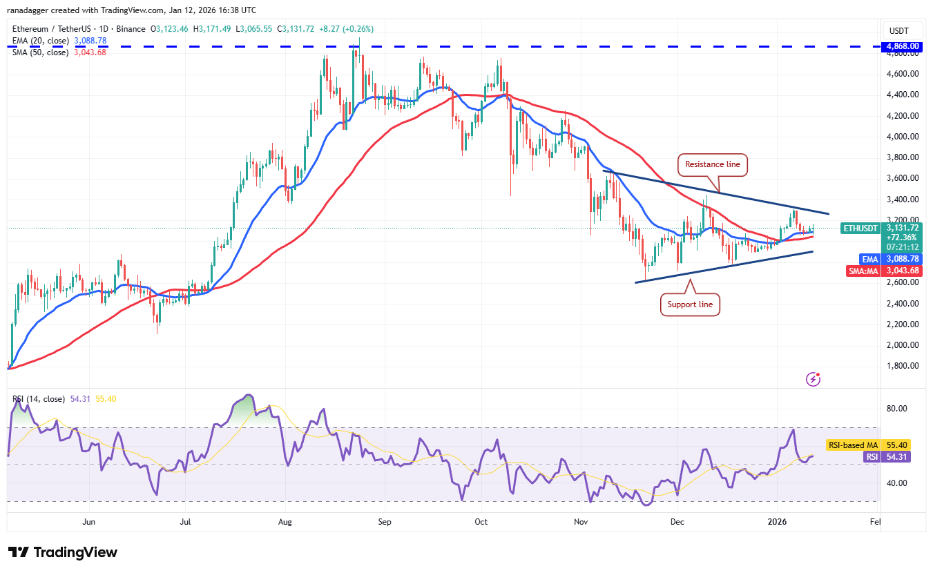 Ether (ETH) has turned up from the 20-day EMA ($3,088), indicating that the bulls are attempting to seize control.