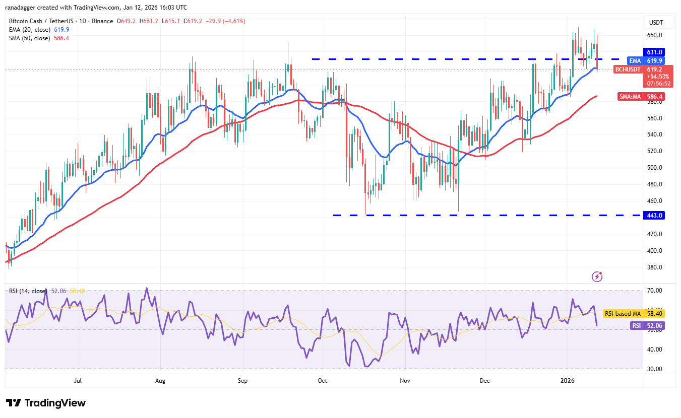The bears are attempting to strengthen their position by pulling the Bitcoin Cash price below the 20-day EMA ($619). If they do that, the BCH/USDT pair could tumble to the 50-day SMA ($586). Buyers are expected to defend the 50-day SMA, as a close below it suggests that the breakout above $631 may have been a bull trap. The pair may then plummet to $518.