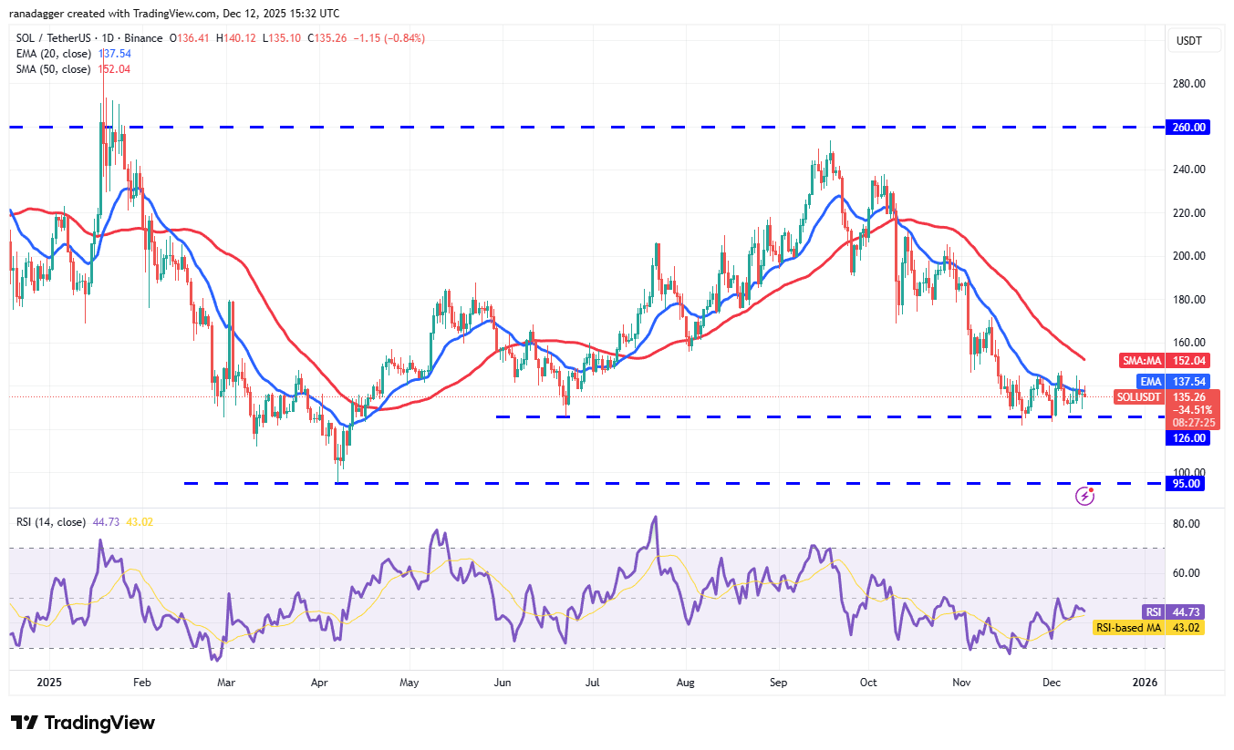 The bulls will have to propel the Solana price above the 50-day SMA ($152) to signal a potential trend change in the near term. The SOL/USDT pair could then ascend to $172 and subsequently to $190.