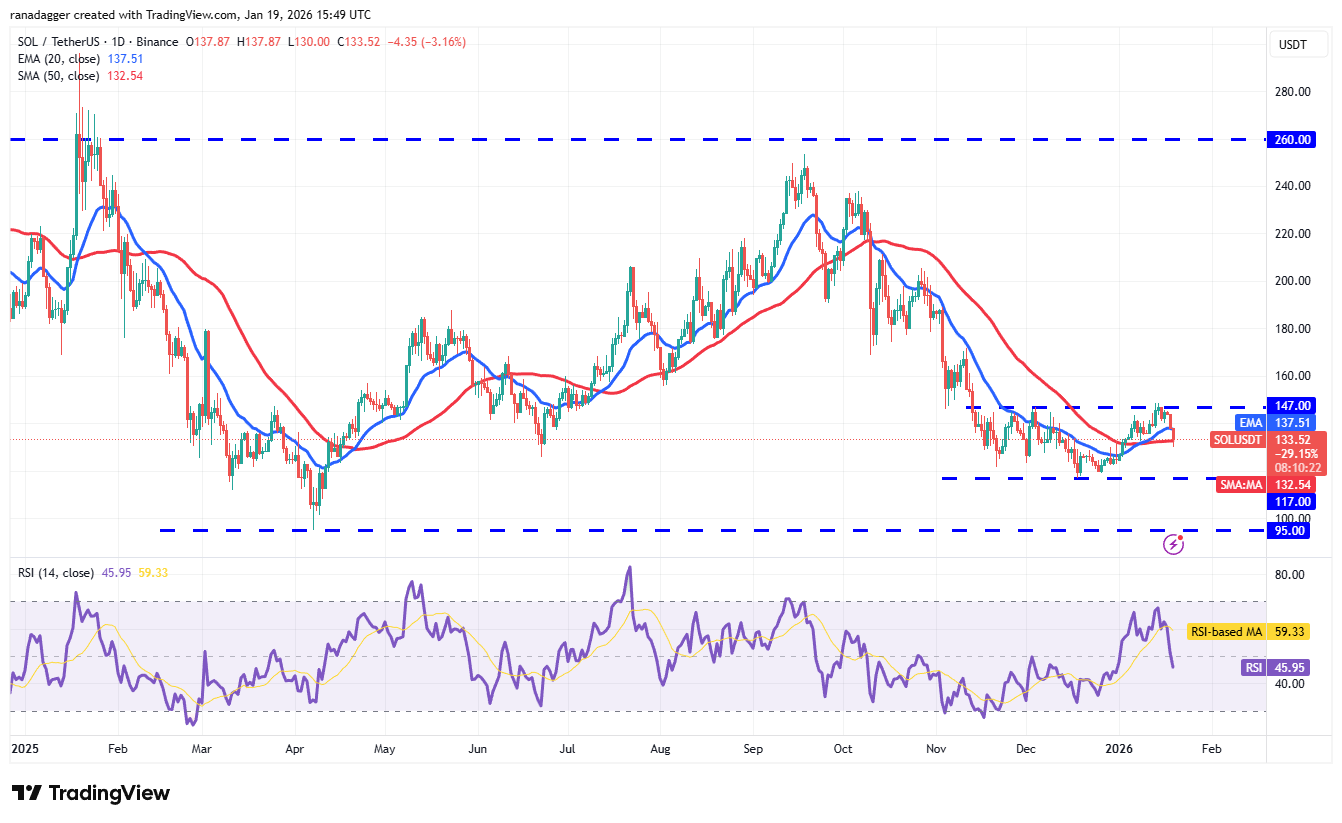 Solana (SOL) turned down from the $147 resistance and has reached the 50-day SMA ($132), indicating that the bears are active at higher levels.