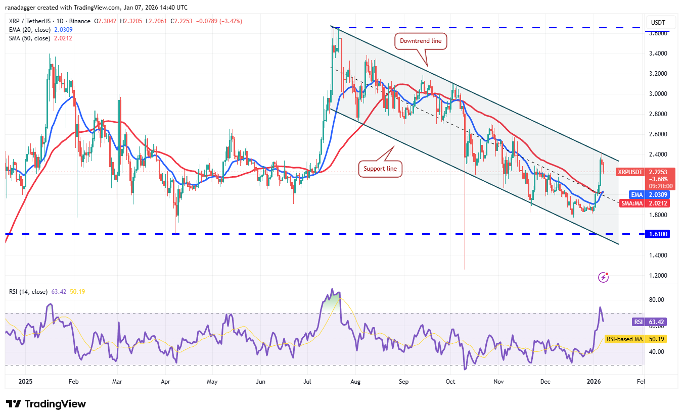 XRP (XRP) reached the downtrend line of the descending channel pattern on Tuesday, which is expected to act as a stiff resistance.