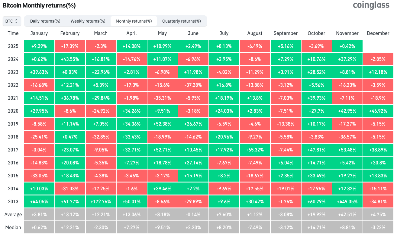As Cointelegraph reported, November is traditionally Bitcoin’s best-performing month, with data from CoinGlass confirming an average upside of a giant 42.5% since 2013.
