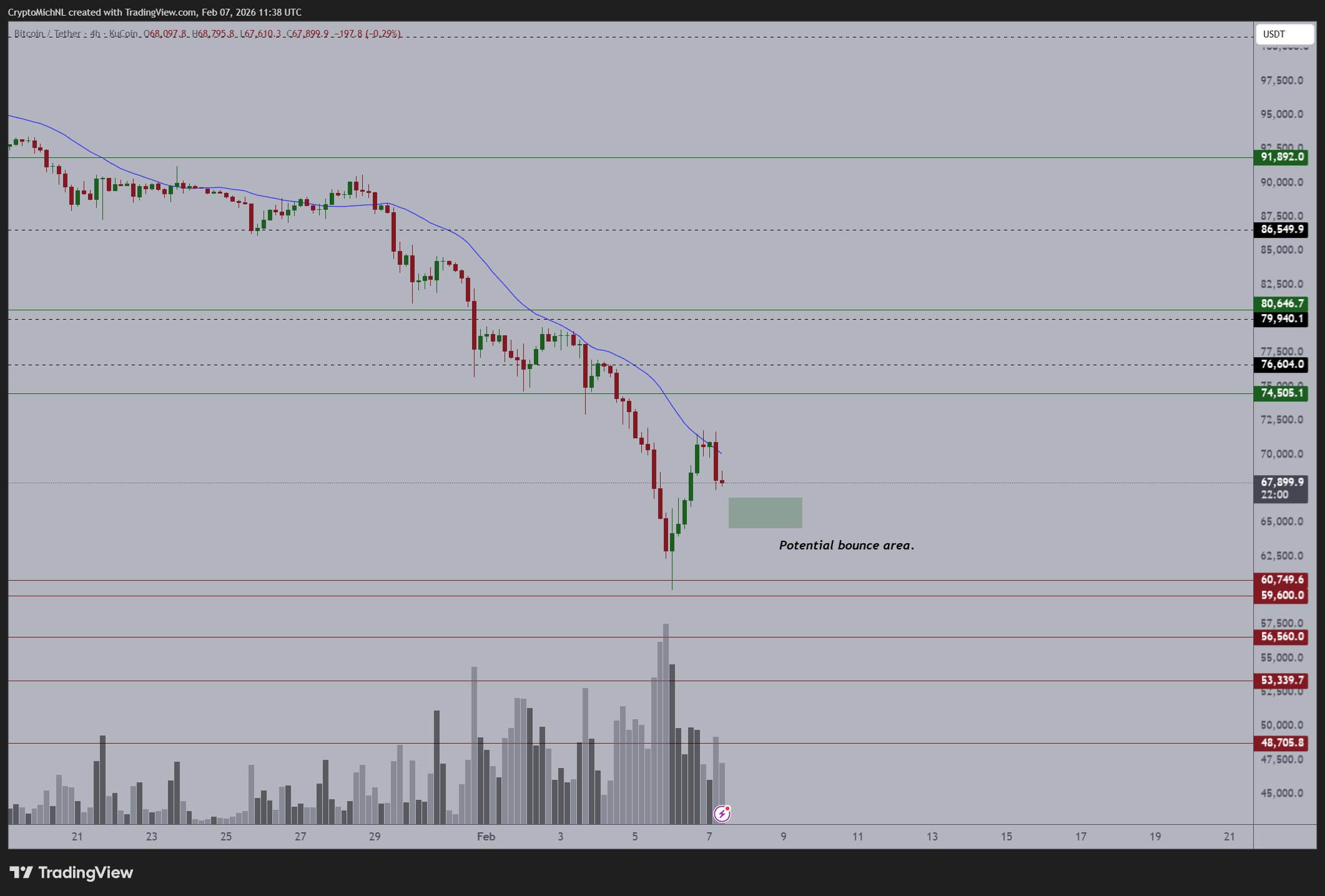 BTC/USDT four-hour chart. Source: Michaël van de Poppe/X
