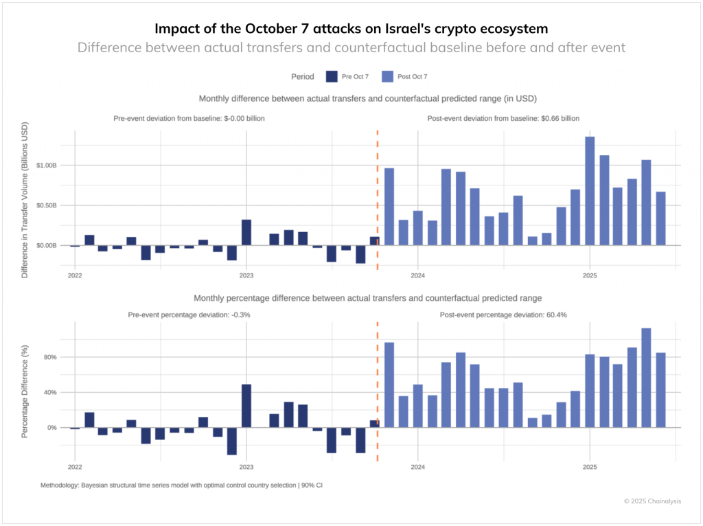 Impact of Oct. 7, 2023, attacks on Israel ‘s crypto ecosystem. Source: Chainanalysis