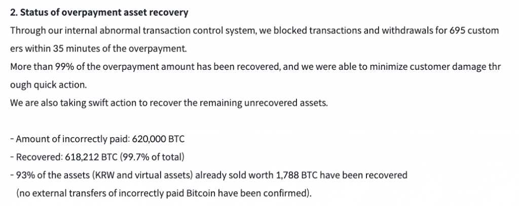 The exchange’s promotional event, which was intended to reward users with 2,000 South Korean won ($1.40), resulted in 2,000 BTC per user due to an employee mistakenly entering “BTC” as the currency unit instead of “won,” he said.