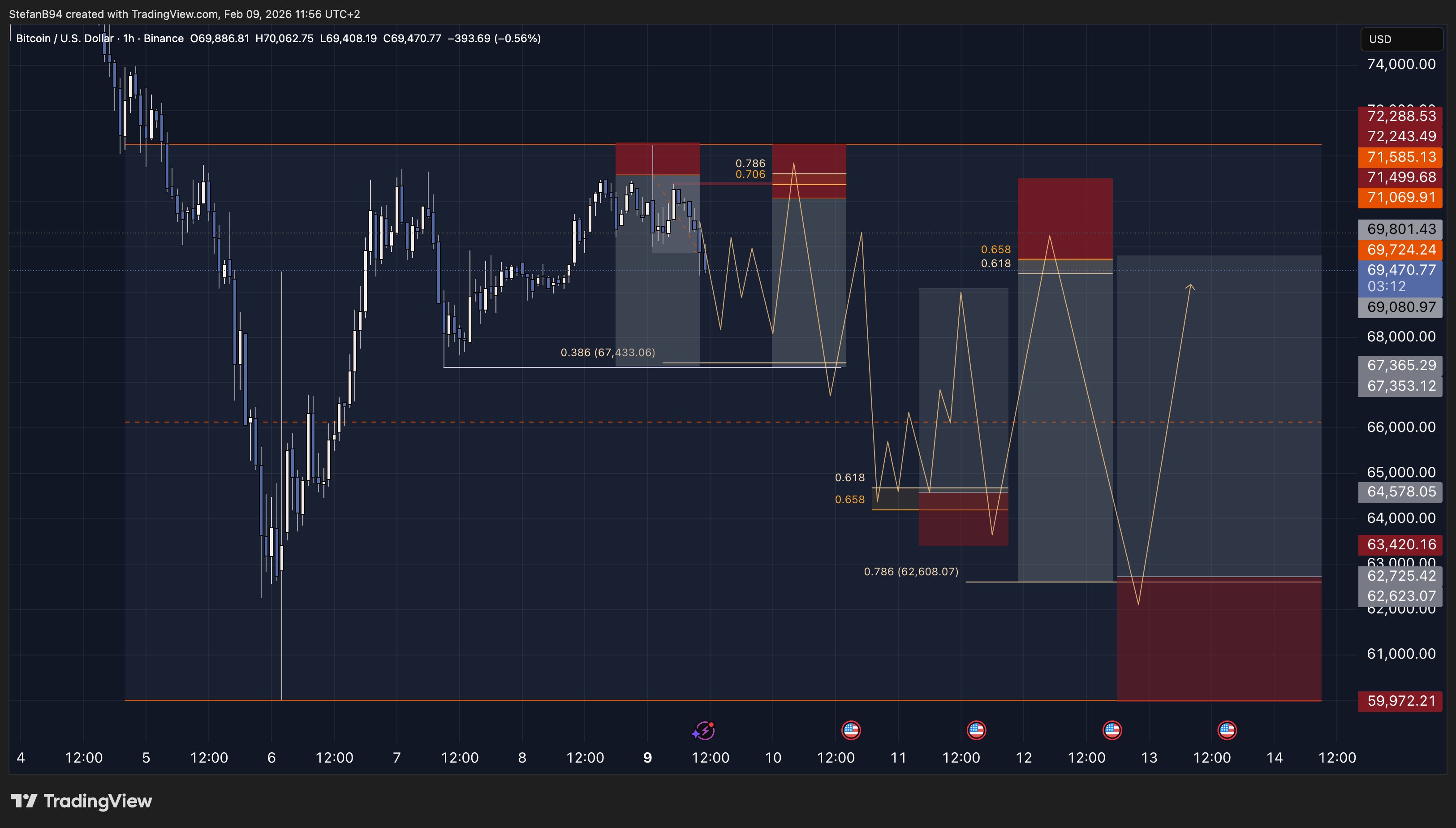 BTC/USD one-hour chart with Fibonacci levels. Source: StefanB/X