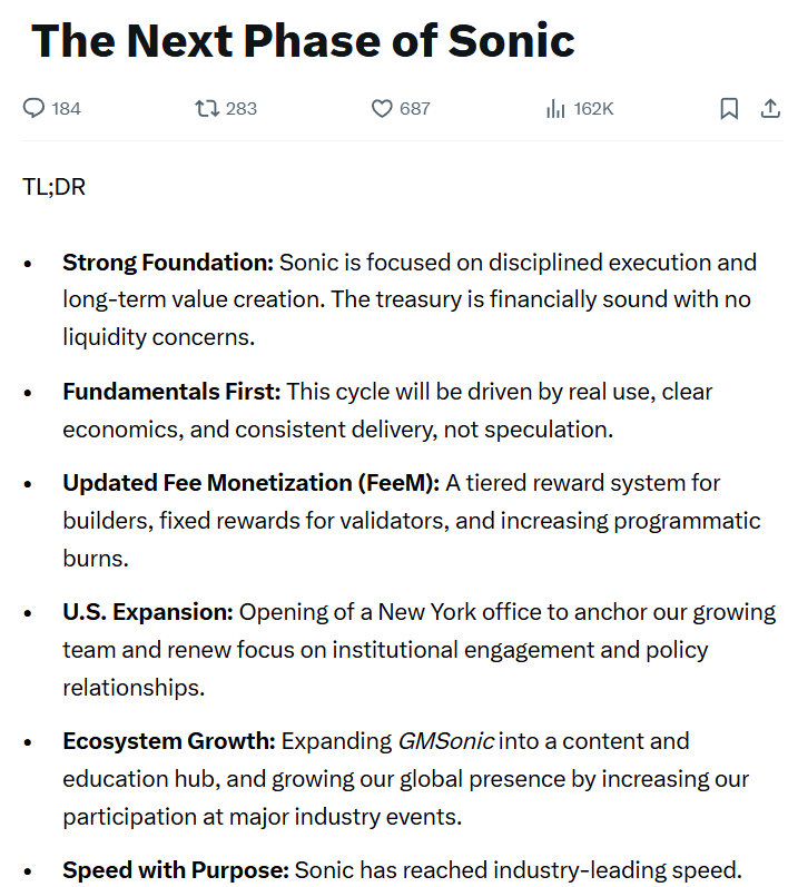 Sonic Labs, the organization behind the Sonic layer-1 blockchain, announced a major strategic shift as it pivots from emphasizing transaction speed to building long-term business value and token sustainability.