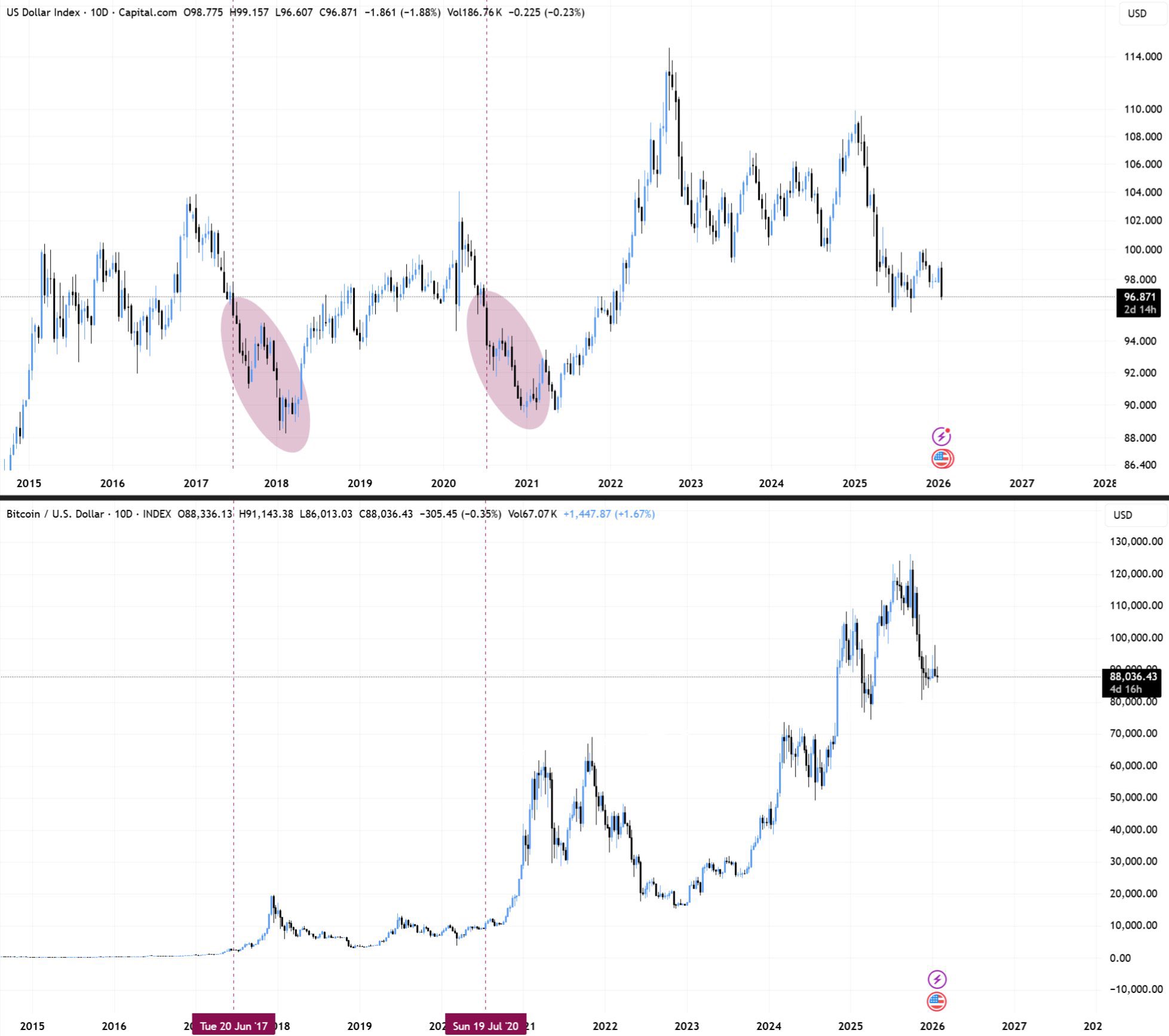 Bitcoin Follows the US Dollar Downward as History Repeats