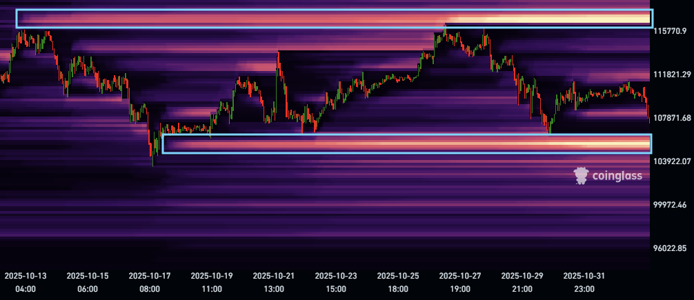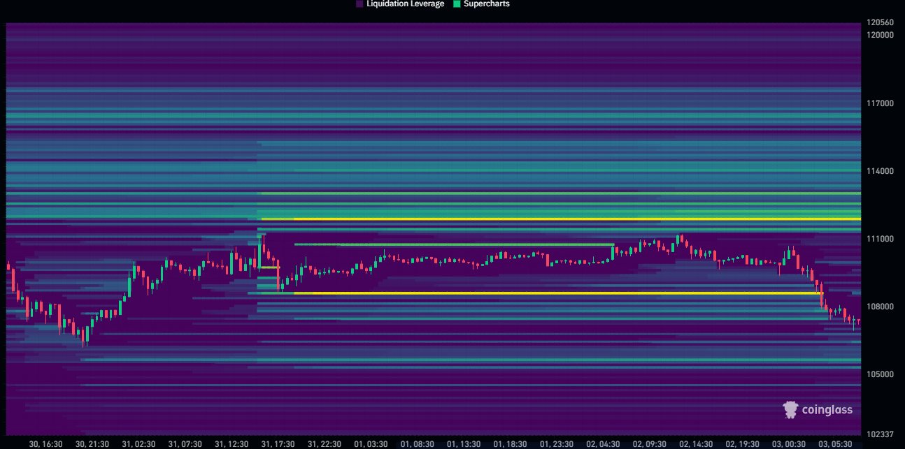 “Price took out the lower bound that was sitting at $108.5K. There’s still a decent cluster around $112K. When zooming out, the $105K-$106K and $117K levels are worth looking at.”