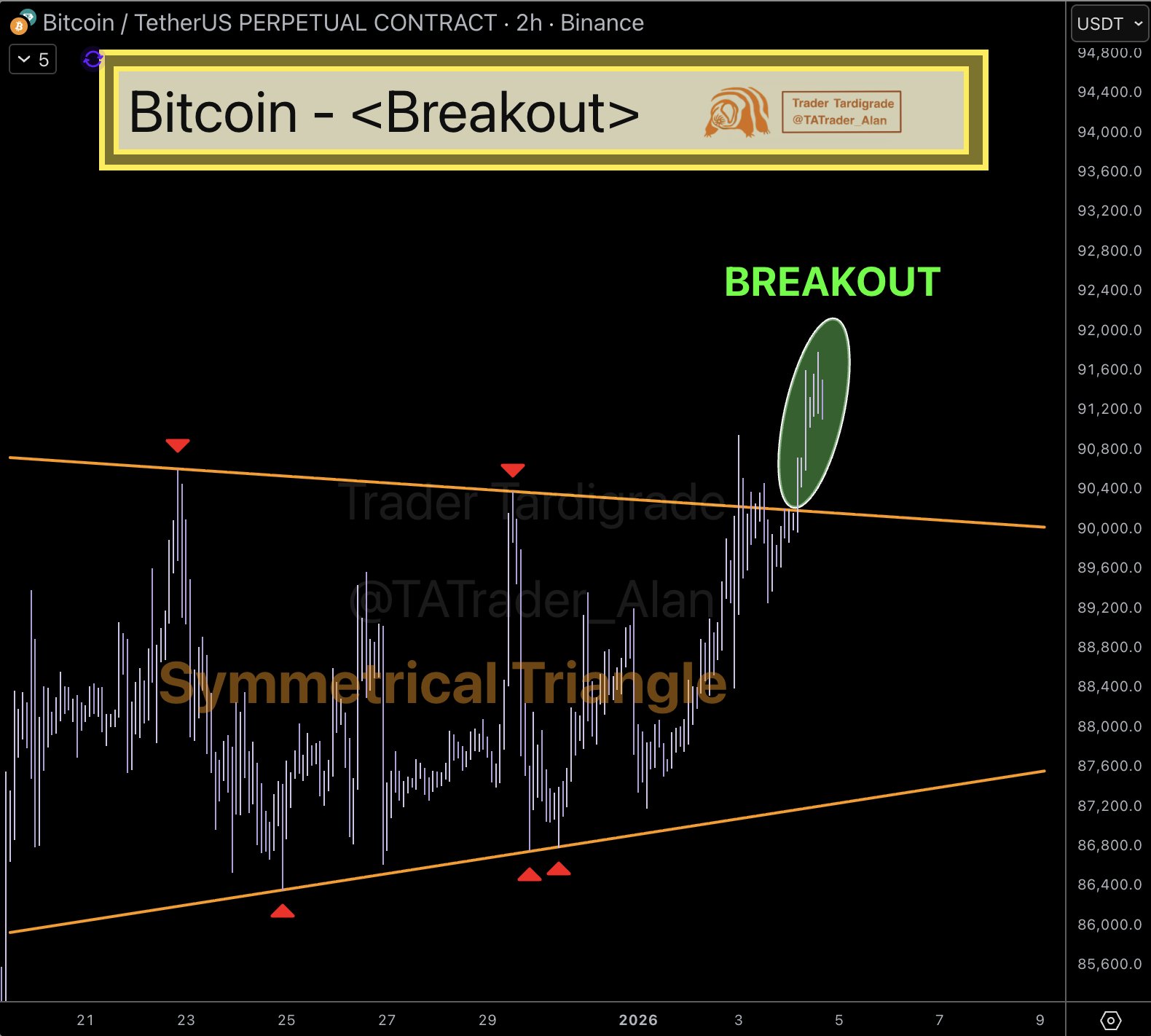 Hinting at change finally coming, trader Alan Tardigrade reported that BTC/USD had now escaped a symmetrical triangle construction on two-hour timeframes. $90,000 was the key level to pass, an accompanying chart showed.