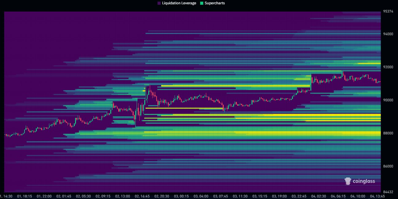 “Largest liquidity cluster in close proximity sits below the yearly open around the $88K area,” Daan Crypto Trades wrote in one of his latest X posts alongside data from monitoring resource CoinGlass.