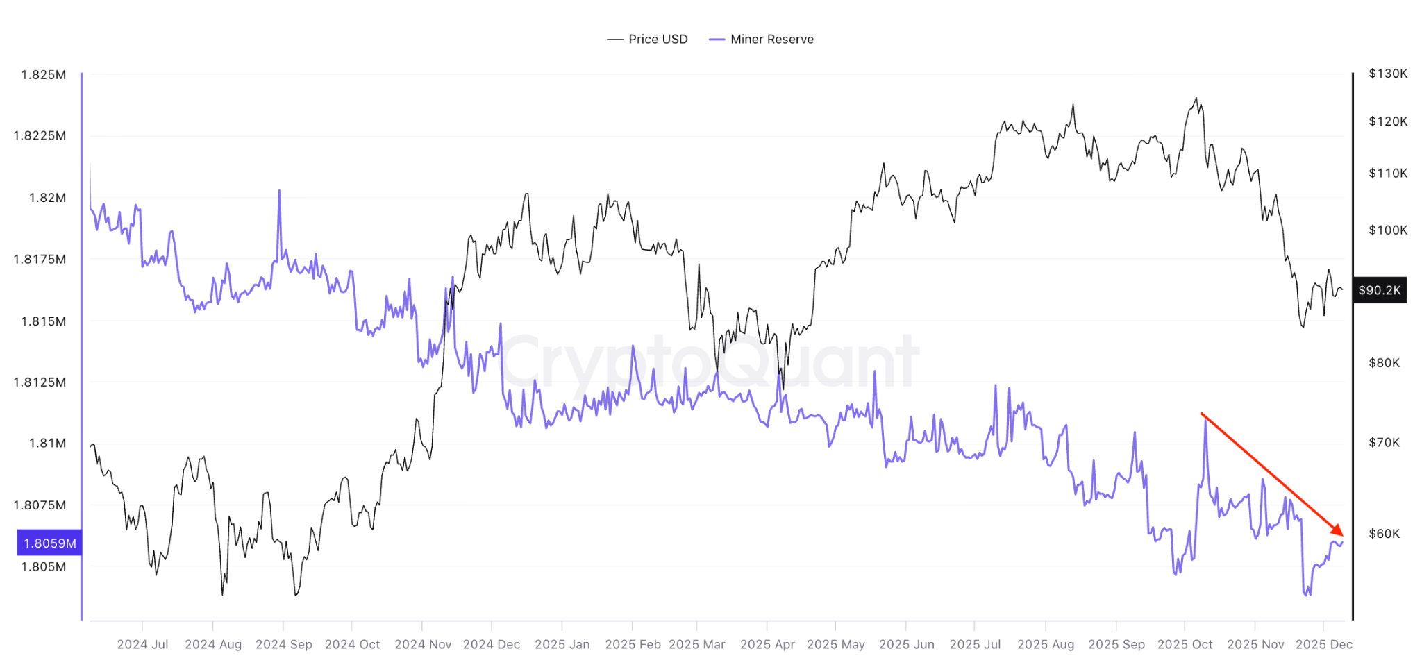 Although miners’ BTC reserves have stayed more or less flat through 2025, there has been sustained selling since early October. Known miner wallets totaled around 1.8 million BTC on Tuesday, down by 5,000 BTC since Oct. 10.