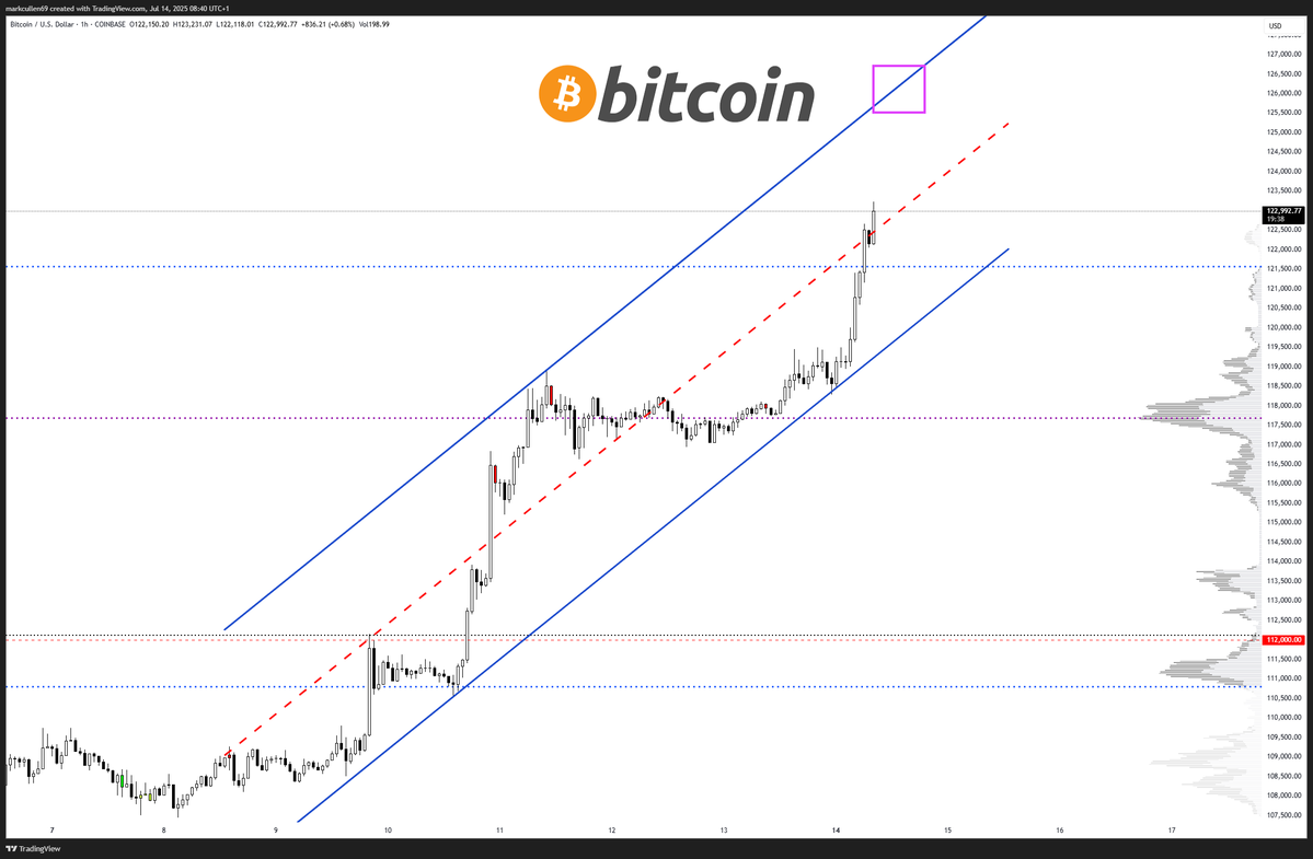 Bitcoin price was trading at $121,600 on Monday, up 3% over the last 24 hours, per data from Cointelegraph Markets Pro and TradingView. BTC’s price action had led to the formation of an ascending parallel channel on the hourly chart.