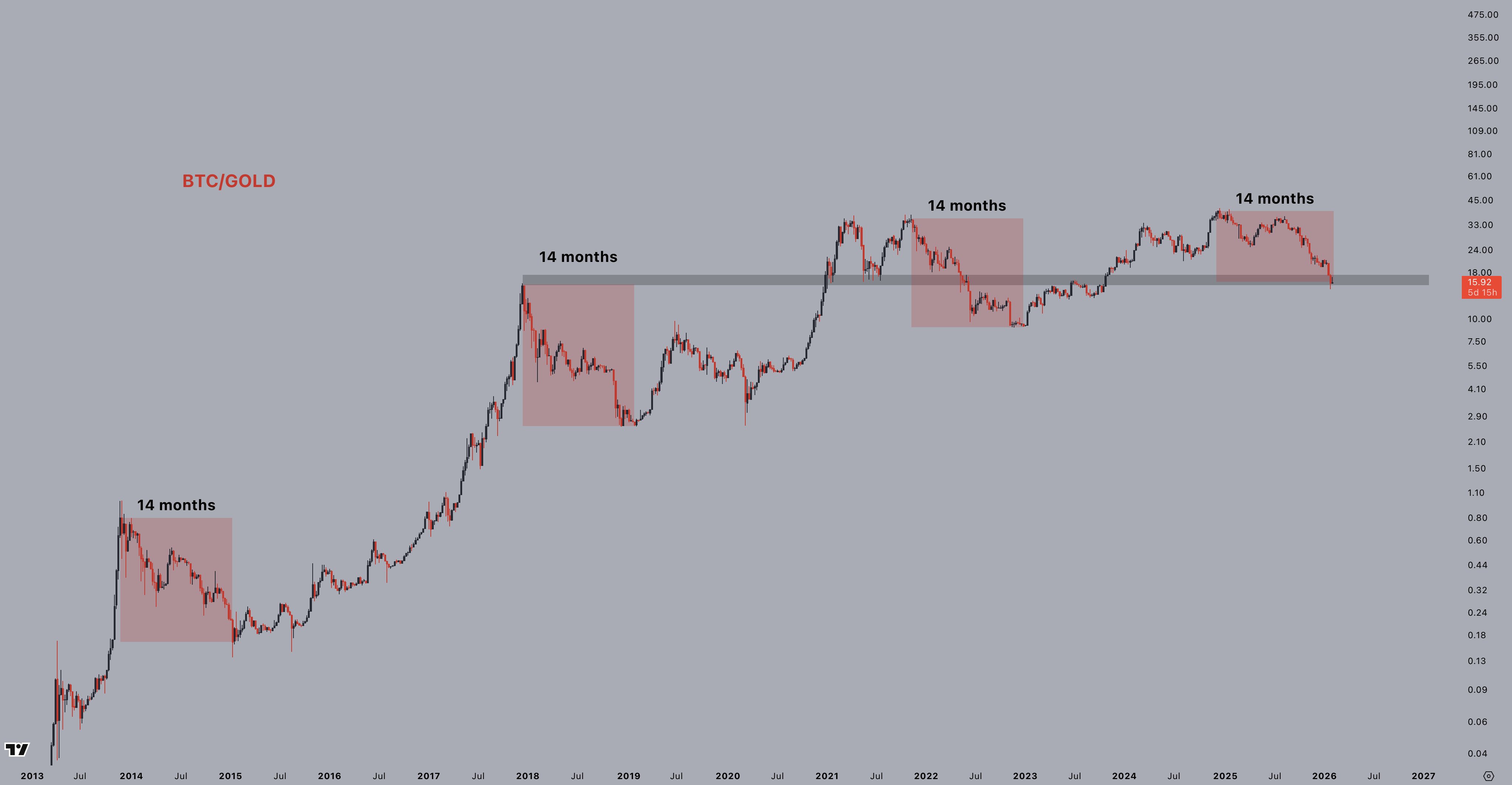 BTC/XAU chart. Source: Jelle/X