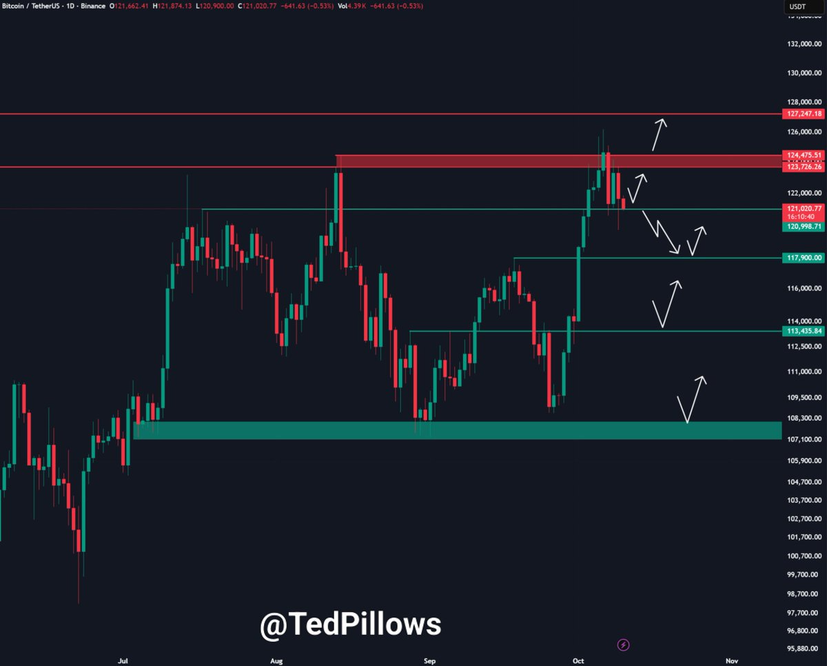 “It seems like $BTC wants to retest the $118,000-$120,000 support level,” fellow analyst Ted Pillows said in a Friday post on X.