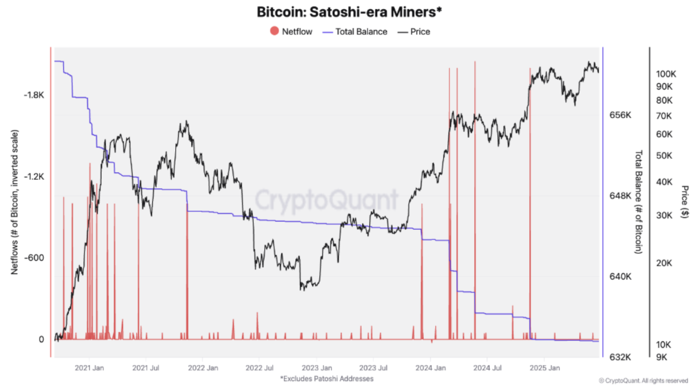“Selling from Satoshi-era miners remains at low levels. These miners have sold only 150 Bitcoin so far in 2025, compared to almost 10K Bitcoin in 2024,” CryptoQuant reports.