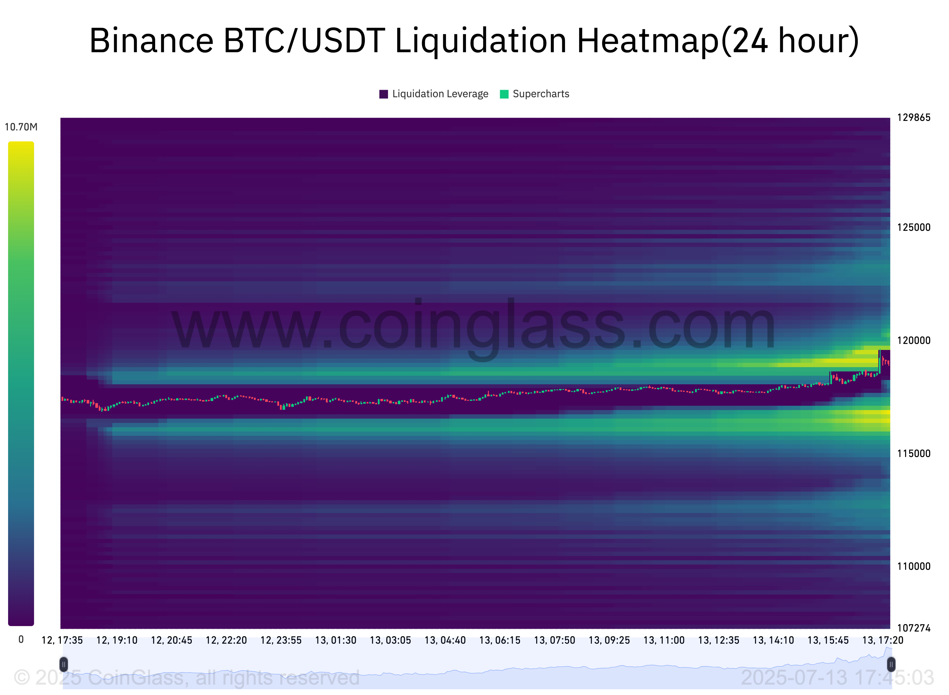 “Going to get interesting next week. We’ve got a lot of big liquidity clusters above and below the current price. We just took out a good bunch at the $119K+ region,” popular trader Daan Crypto Trades reacted in a post on X.