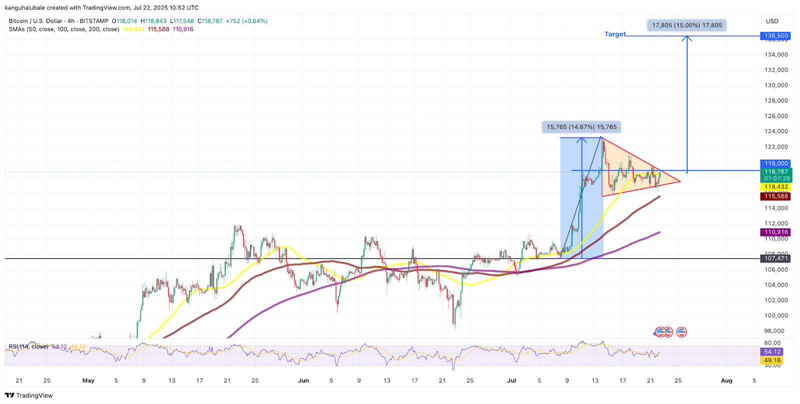 Bitcoin “bull pennant” targets $136,000 and beyond