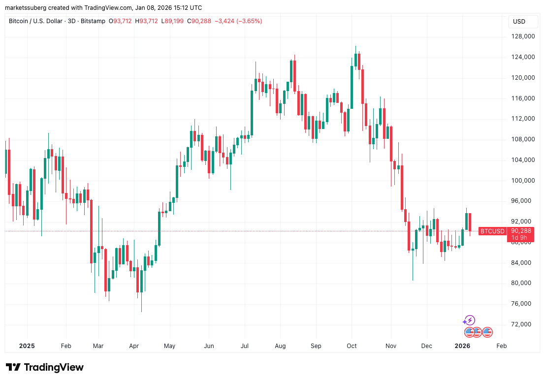 After nearly reaching $95,000, BTC/USD is back near its yearly open, per data from TradingView, threatening to give up $90,000 on intraday timeframes.