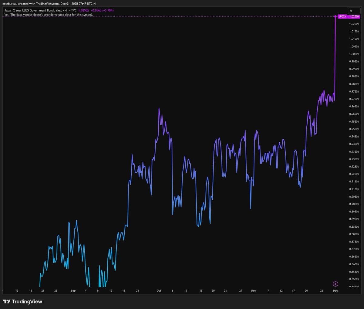 Japanese yields are spiking with the 2-year at its highest level since 2008. The Yen is also surging,” said co-founder and CEO Coinbureau Nic in his latest post on X.