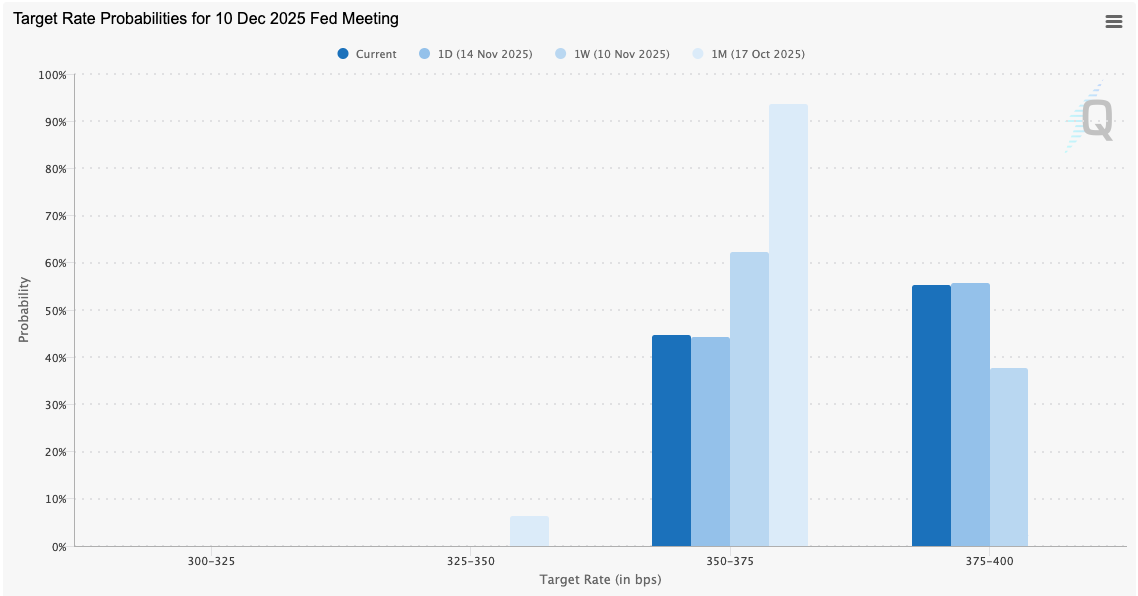 In part thanks to this lack of data, CME Group’s FedWatch Tool shows that markets are now unconvinced that the Federal Reserve will cut interest rates by 0.25% at its next meeting on Dec. 10.