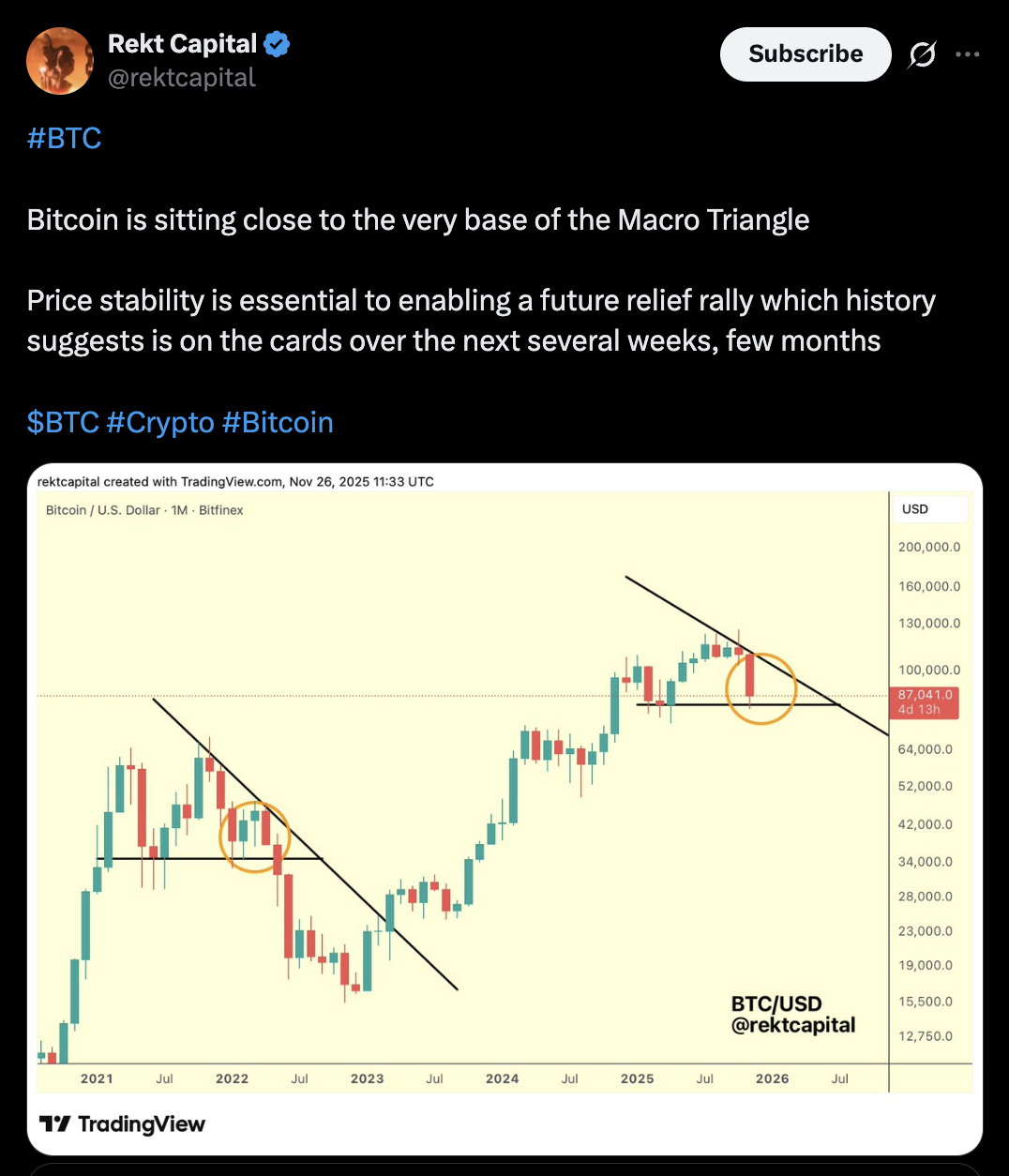 Beyond technicals, Bitcoin’s downside could be triggered by growing uncertainty around Strategy, one of the largest corporate holders of BTC, as MSCI reviews whether to exclude companies whose digital assets account for a majority of their balance sheets.