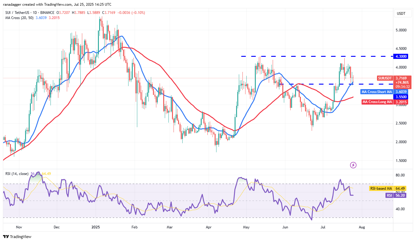 Sui (SUI) turned down from the $4.30 resistance on July 18, indicating that the bears are active at higher levels.