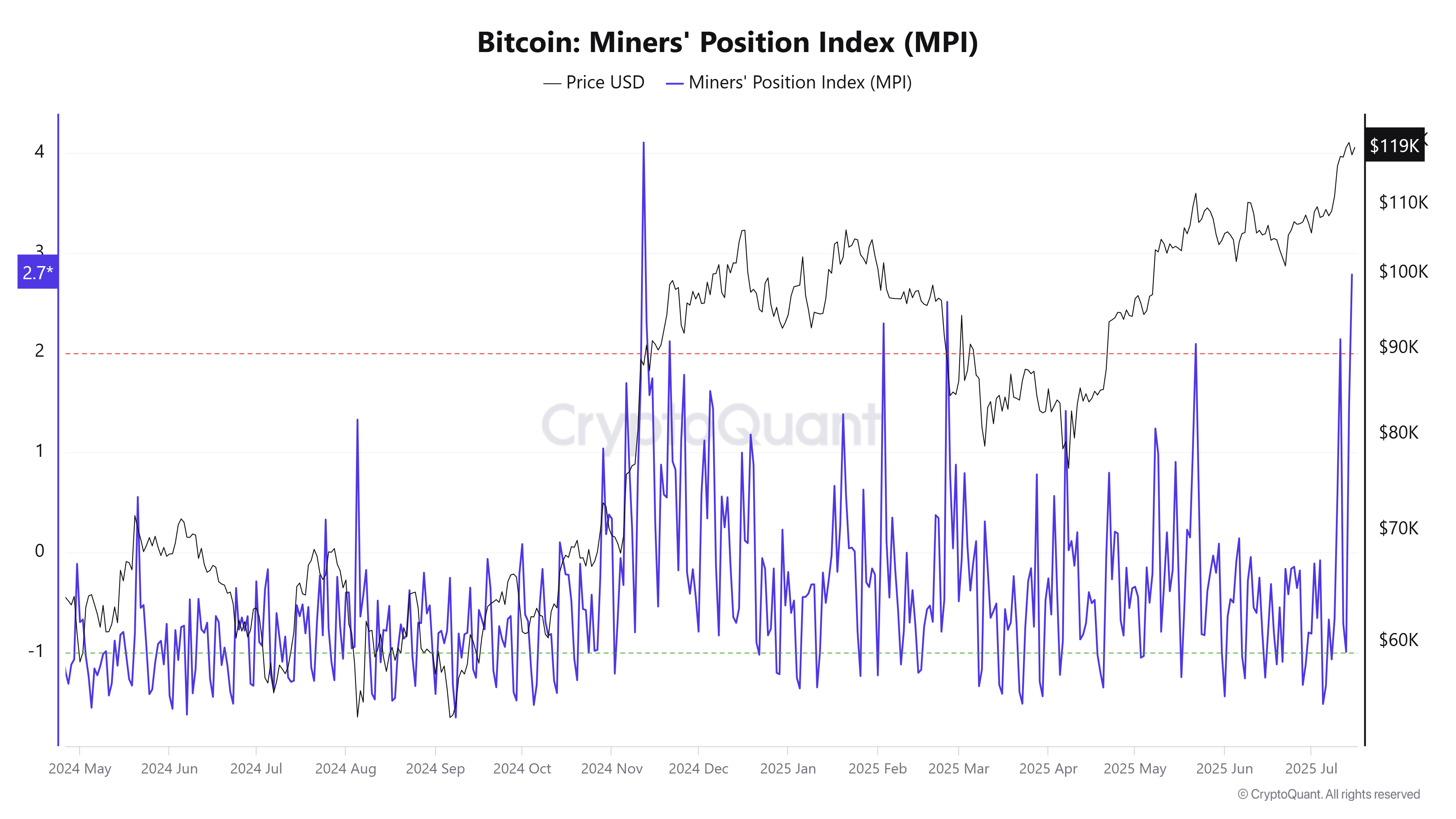 Bitcoin Miners’ Position Index. Source: CryptoQuant
