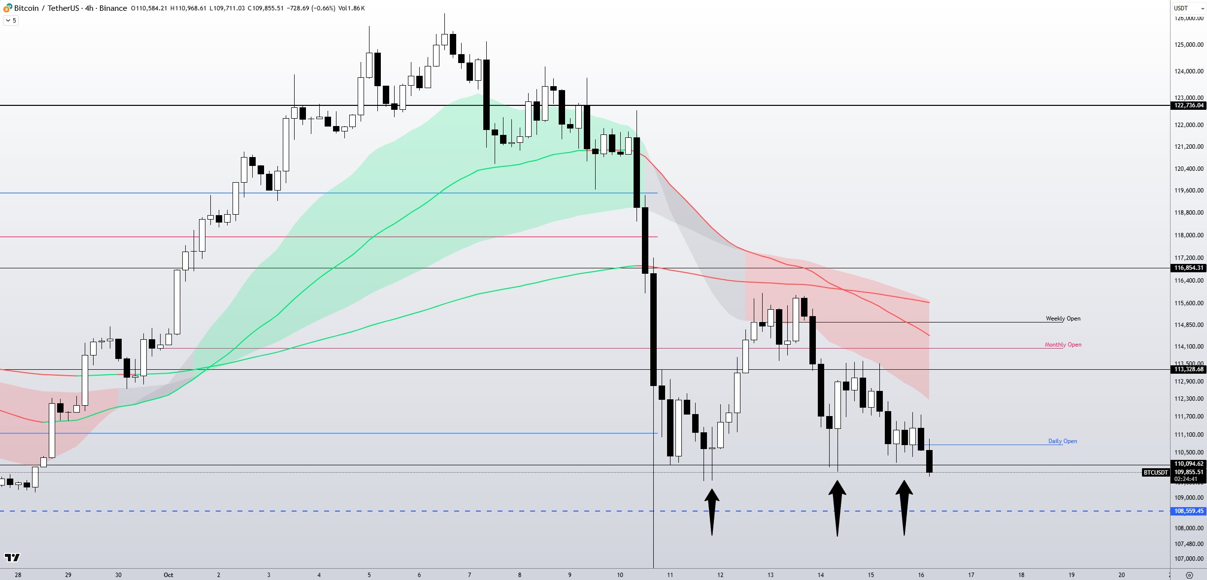 Data from Cointelegraph Markets Pro and TradingView showed BTC/USD wicking below $110,000 on Bitstamp.