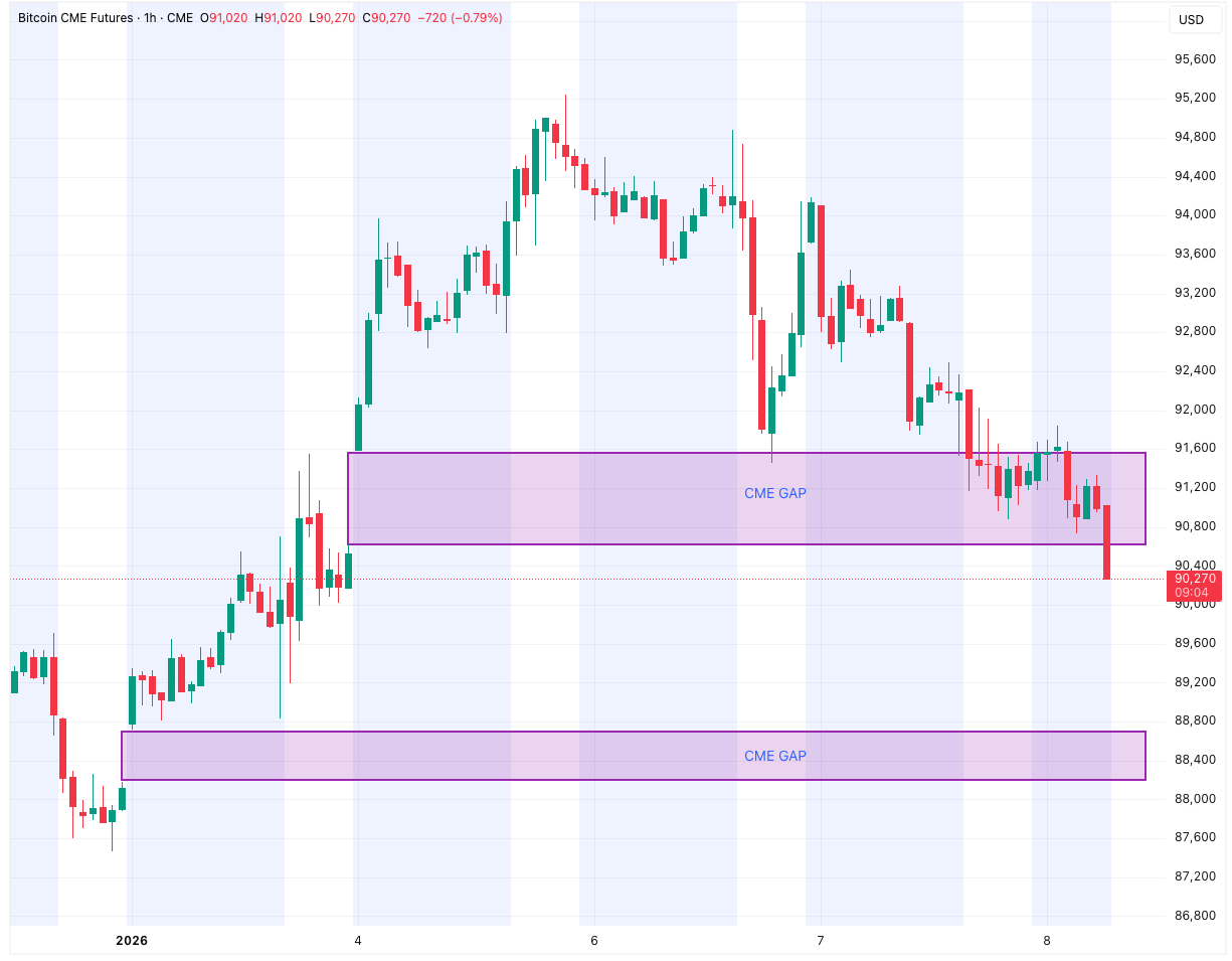 Bitcoin Targets Futures Gaps as it Dips Under $90,000