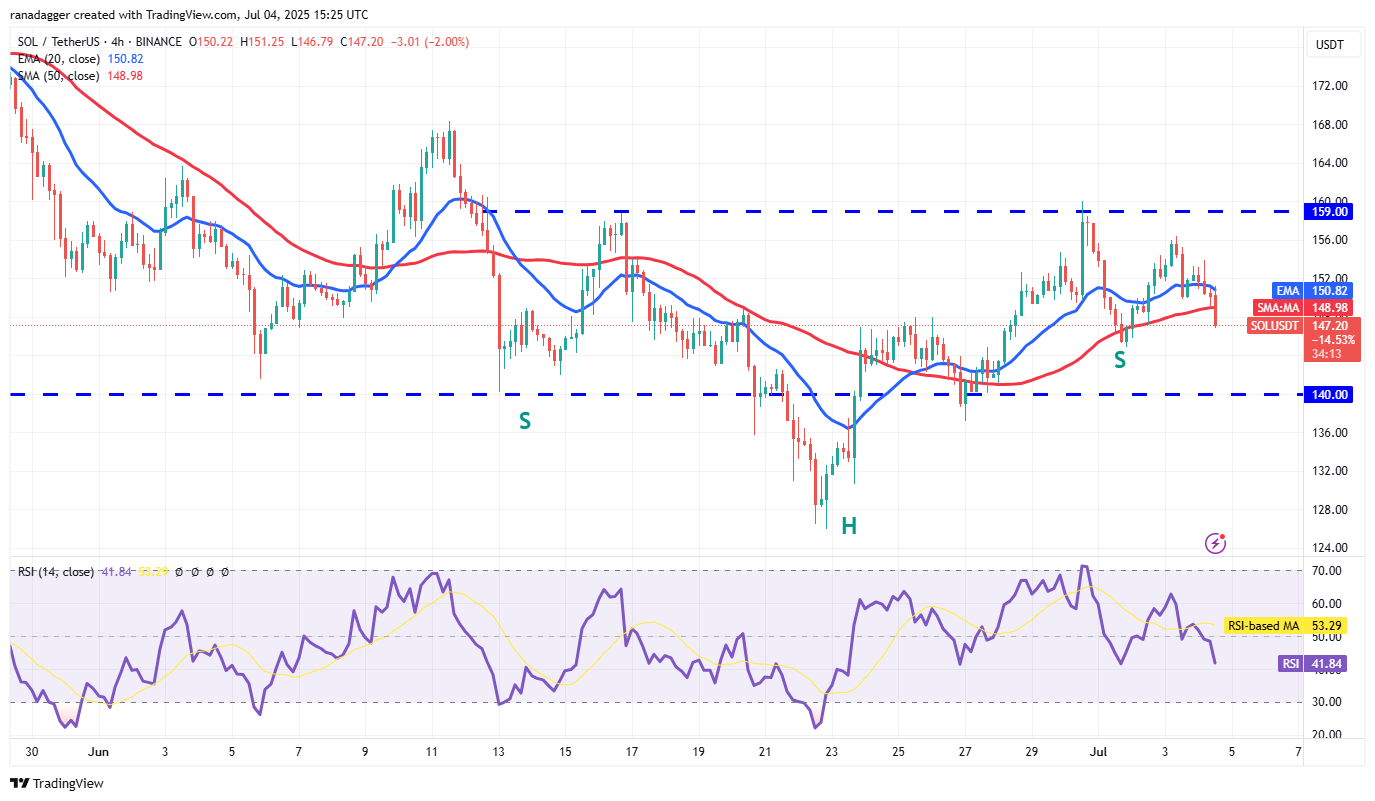 The repeated failure of the bulls to clear the $159 hurdle in Solana (SOL) started a pullback below the 20-day EMA ($148).
