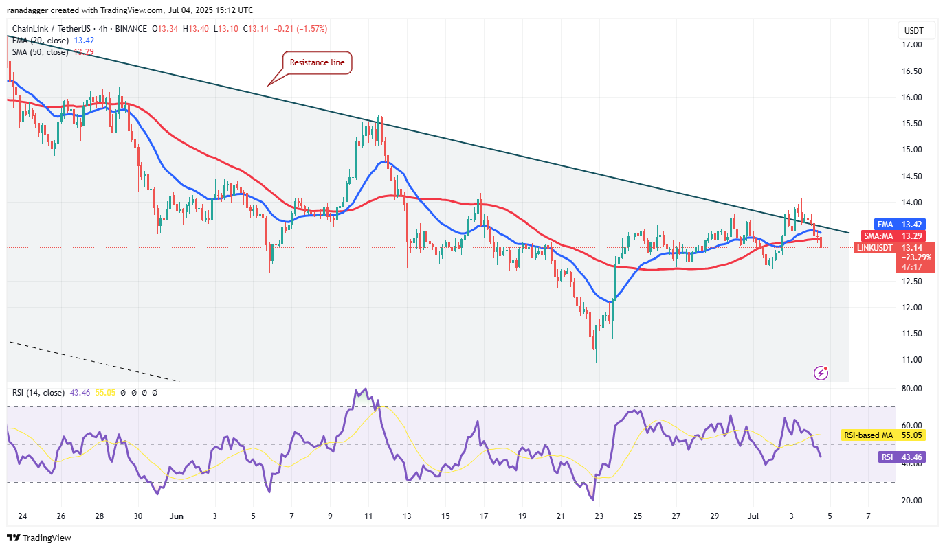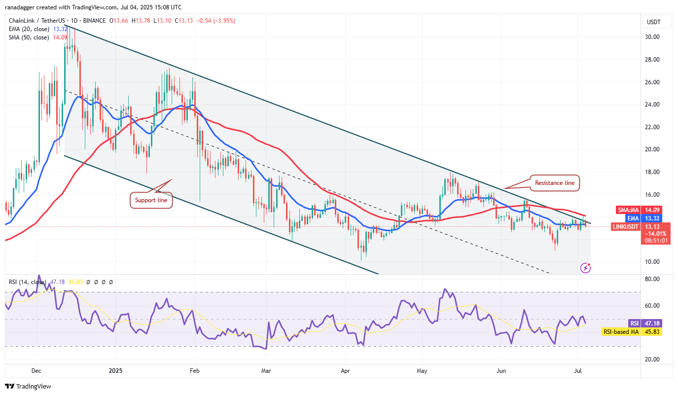 Chainlink (LINK) rose above the 20-day EMA ($13.32) on Wednesday, but the bulls could not pierce the 50-day SMA ($14.09) on Thursday. That suggests that bears are active at higher levels.