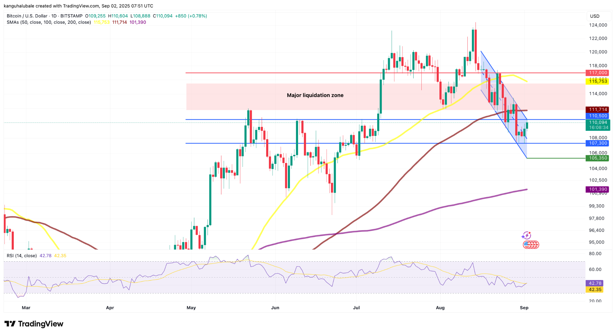 • Bitcoin price recaptures $110,000, but bearish pressure persists.