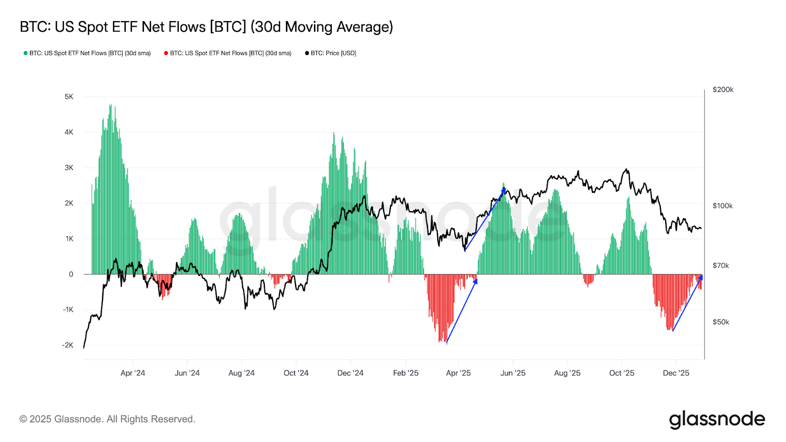 Spot Bitcoin ETF net flows. Source: Glassnode